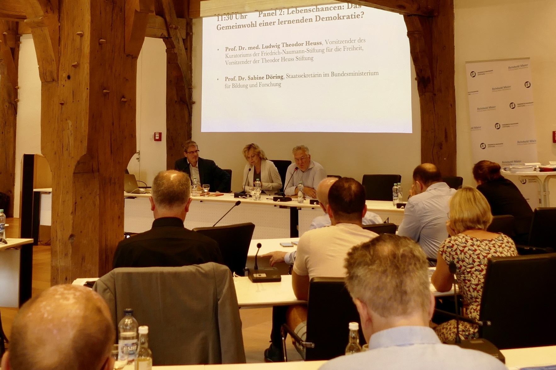 Am 10. Juni 2023 tagten liberale Denker und Lenker aus dem In- und Ausland im Ratssaal des Tübinger Rathauses, um über den Fortschritt der Lebenschancen in Deutschland zu beraten. Die Teilnehmenden, darunter die zwei Tübinger Staatssekretäre Sabine Döring und FDP-Präsidiumsmitglied Michael Theurer sowie mehrere Professoren der Universität, erneuerten liberale Tübinger Traditionen als "Liberalismus der Lebenschancen“. Dieser geht auf Prof. Ralf Dahrendorf zurück, dem Begründer der Soziologie an der Universität Tübingen. Das öffentliche Symposium wurde von der Reinhold-Maier-Stiftung ausgerichtet.